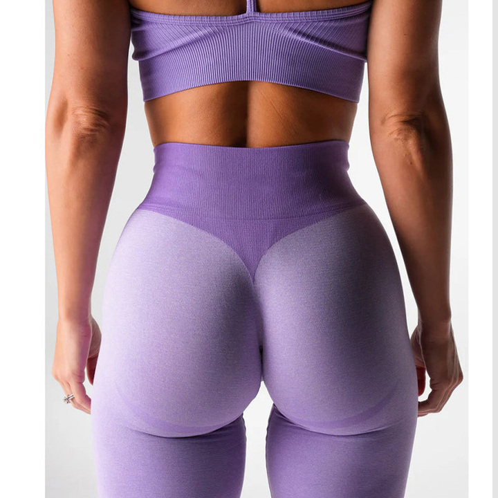 Lila Knockout cintura alta Deep V Yoga pantalones Leggings para mujeres logotipo personalizado mallas sin costuras Cierre de cintura elástica patrón sólido