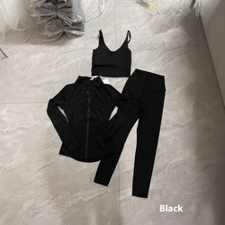 Traje de Yoga de tres piezas para mujer, chaqueta transpirable y de secado rápido con patrón sólido, chaleco en forma de U, pantalones de sujetador recortados
