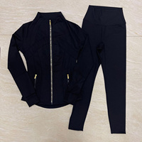 Chaquetas de gimnasio con cremallera negra y dorada para mujer, mallas alineadas de Yoga transpirables de secado rápido para correr, entrenamiento físico, sensación desnuda sólida