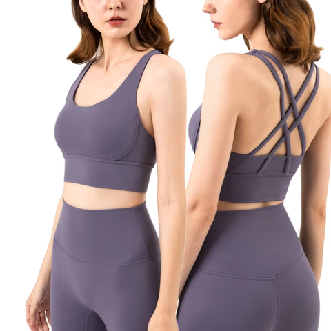 Custom Private Label Gym High Quality Women's Backless Crop Sports Bra Shorts High- Yoga Fitness Cross-Back Plus Size