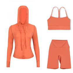 Original Standard Three-Piece Fitness Sports Set Lightweight Breathable Y-Back Bra Jacket Shorts Elastic Waist Naked Yoga Front