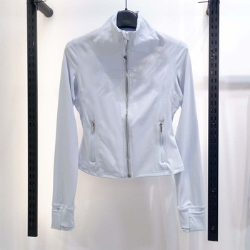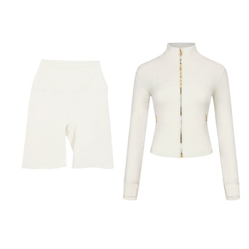 Original Women's Tight Fit Slim Crop Top Fitness Jacket Short Vertical Collar with Solid Pattern Front Logo Yoga Sets