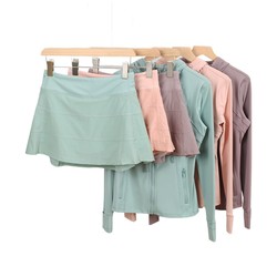 Giacca da donna con cappuccio a vita alta e traspirante per il Fitness sportivo con triplo plissettaggio con Logo anteriore abbinato a gonna da Tennis