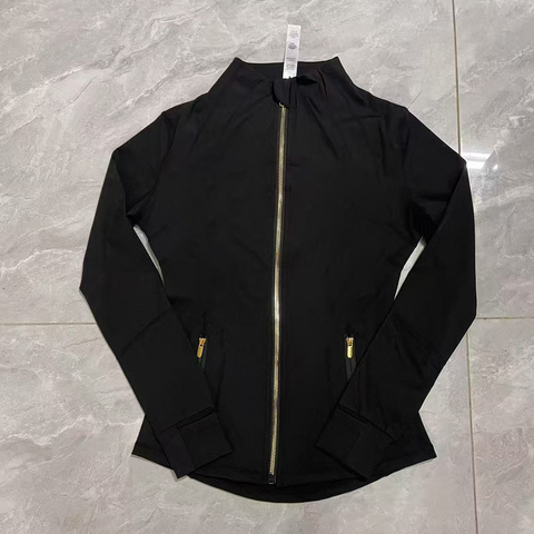 Damesjas Met Zwarte Gouden Ritssluiting En Actieve Fitness Tops Met Lange Mouwen, Herfst Lichtgewicht Spandex Sportjack Anti-Sculpting Voor