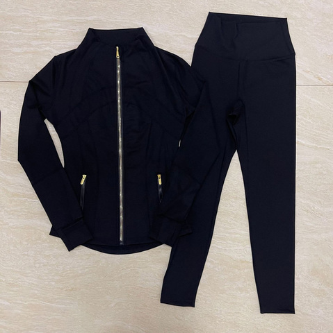 Sportjassen Met Zwarte Gouden Ritssluiting Voor Dames, Snel Droog Ademende Yoga-Leggings Voor Hardloopfitness, Solide Naakt Gevoel