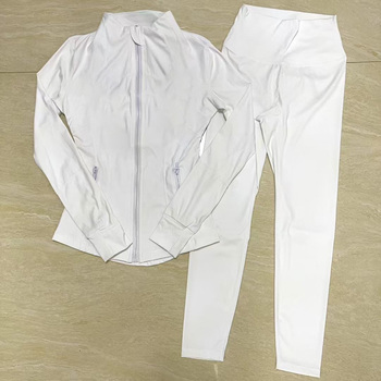 ชุดโยคะสีพื้นกางเกงเอวสูงสำหรับผู้หญิง, เสื้อแจ็คเก็ตคอปกทรงสลิมฟิตระบายอากาศได้ดีกางเกงกีฬาซับเหงื่อ