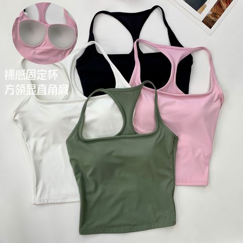 Özel Logo Yoga mahsul Tops yastıklı katı renk yüksek destek U bağlantı yelek darbeye kadın spor sutyen